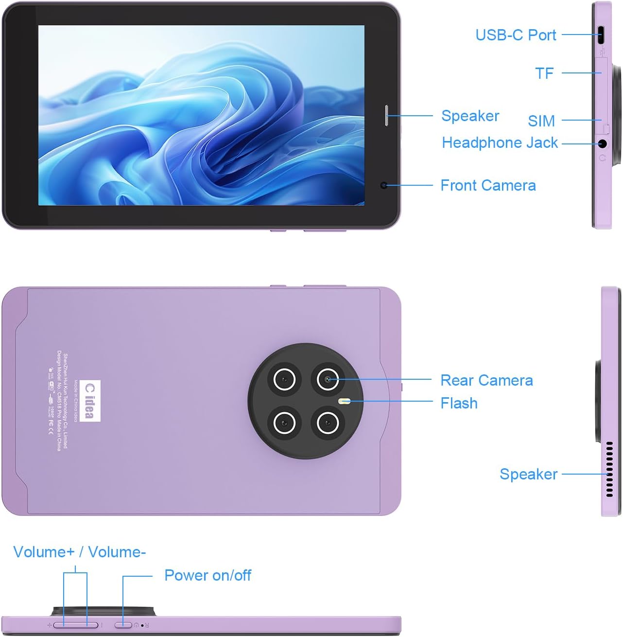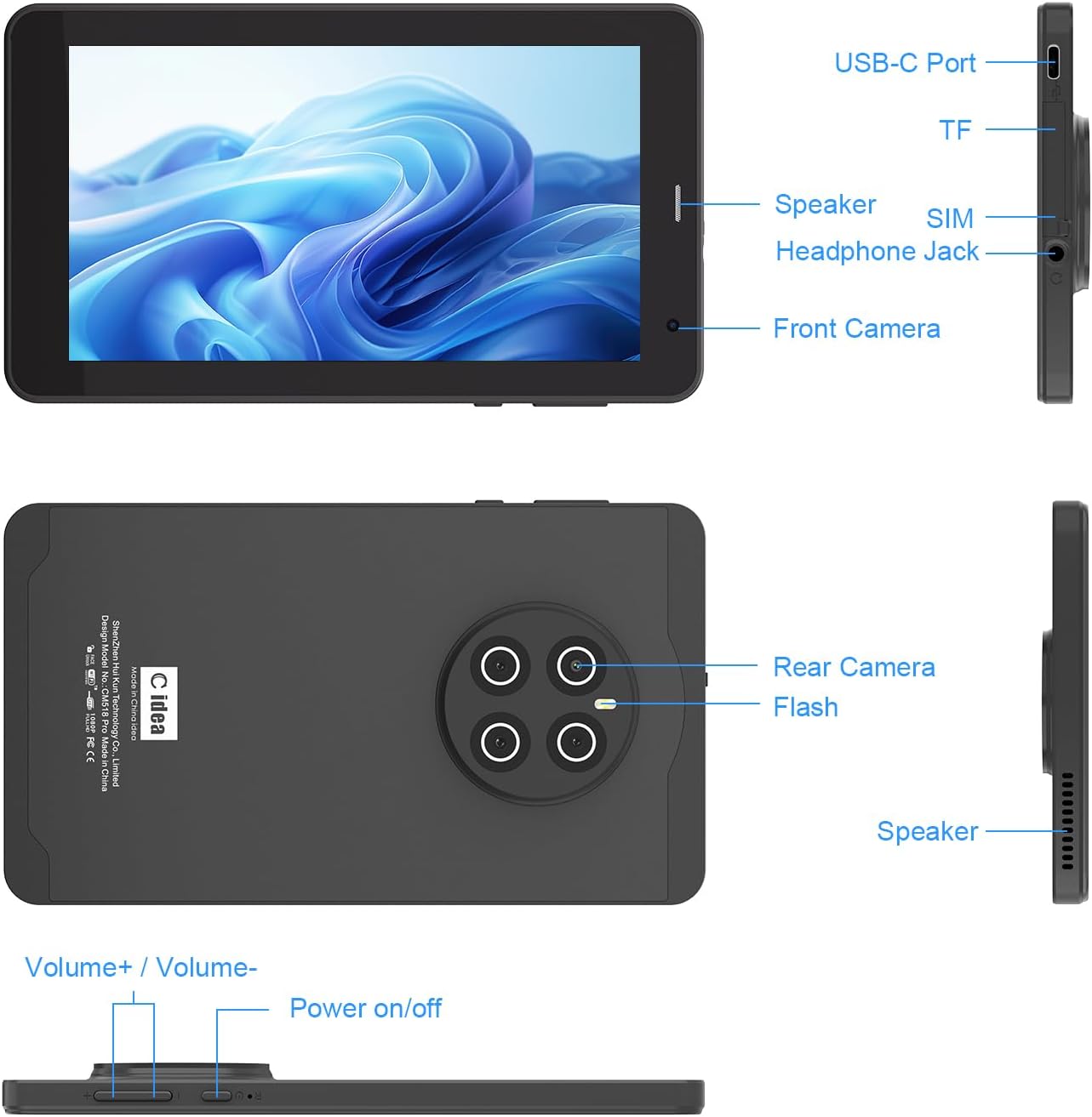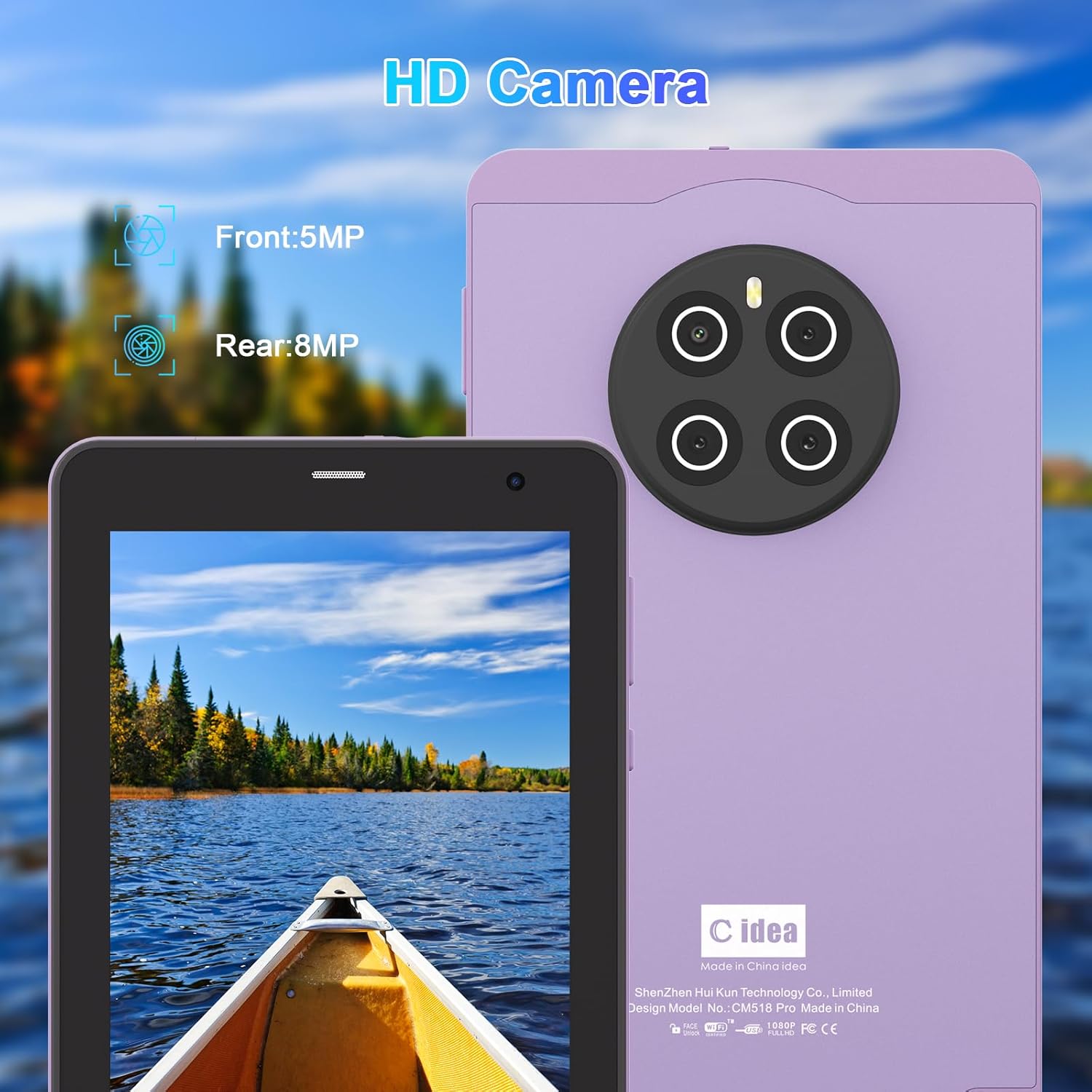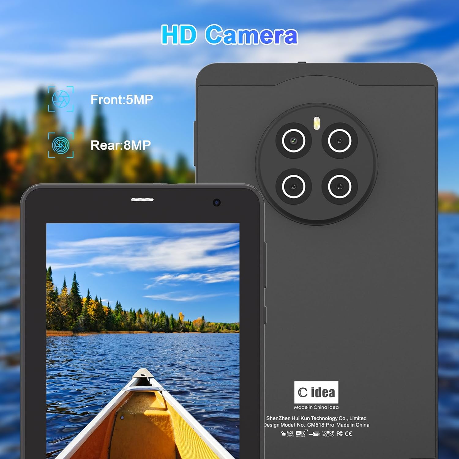 - 【Multifunctional Android Tablet】C idea Wifi Tablet is fitted with 5MP+8MP dual cameras,meet your needs of taking photos and videos to record the good life. The Android tablet supports WIFI, Bluetooth,GPS.,FM.With a stable internet connection you can enjoy recreational activities, study, read,game,make video calls etc.