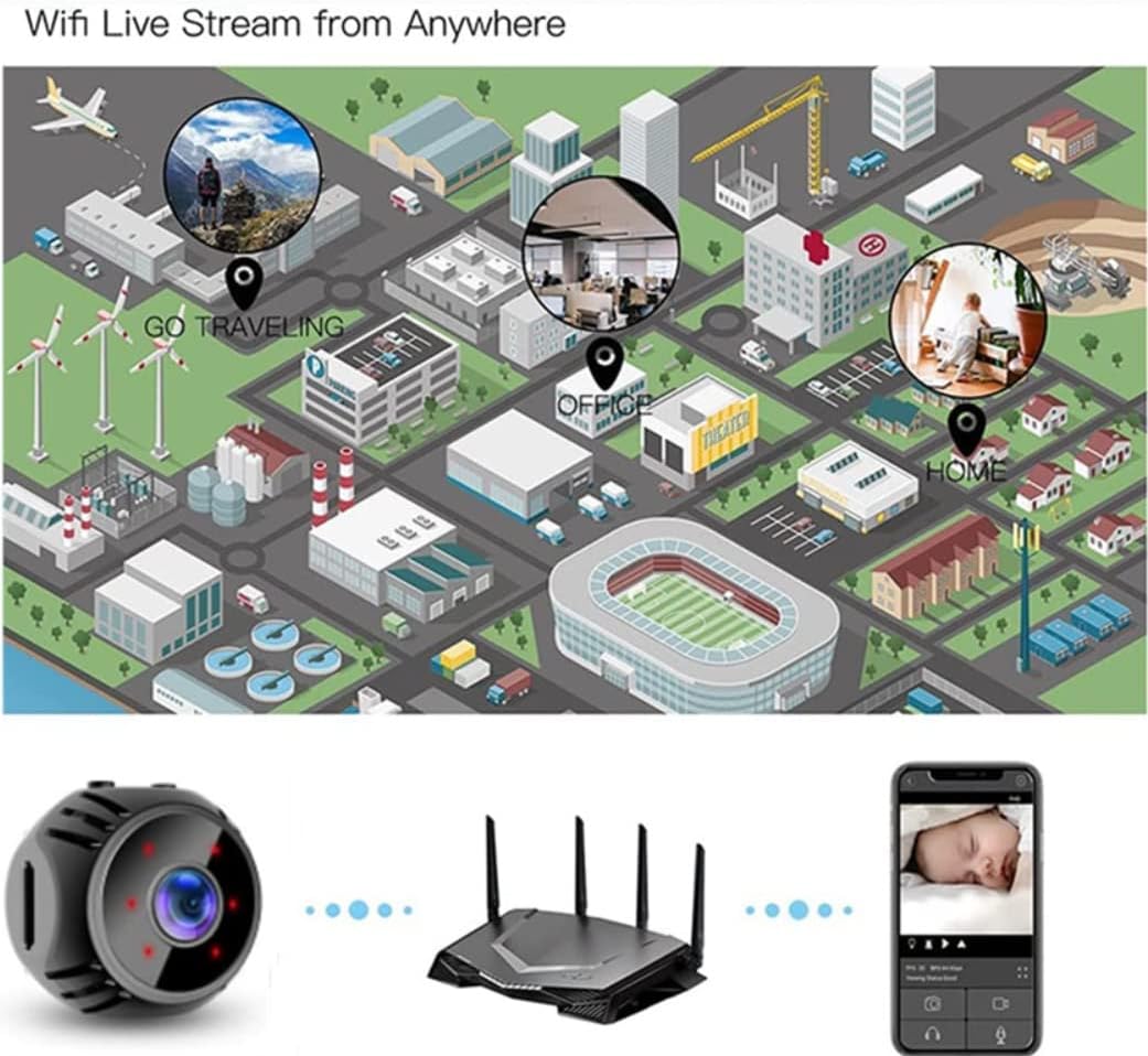 - 【Easy Setup and Operation】This Mini Small Hidden Camera can be easily set up within minutes, with no technical expertise required. Simply connect it to your wireless network and monitoring right away.